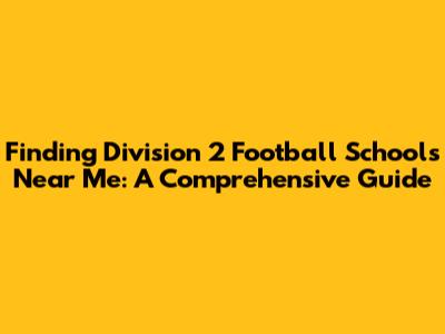 Hey guys! So, you're on the hunt for Division 2 football schools near me? Awesome! You're in the right place. This journey is all about finding that perfect fit, a school where you can excel both on the field and in the classroom. Let's break down how to find those hidden gems and make your college football dreams a reality. This guide will walk you through everything, from what Division 2 football is all about to the specific steps you can take to locate schools in your backyard. We will also discuss important information to consider when choosing a school.