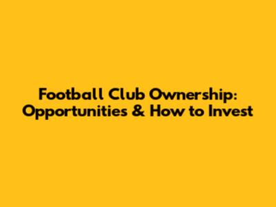 Football Club Ownership: Opportunities & How To Invest