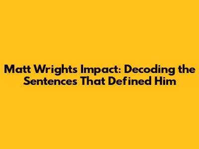 Matt Wright's Impact: Decoding The Sentences That Defined Him